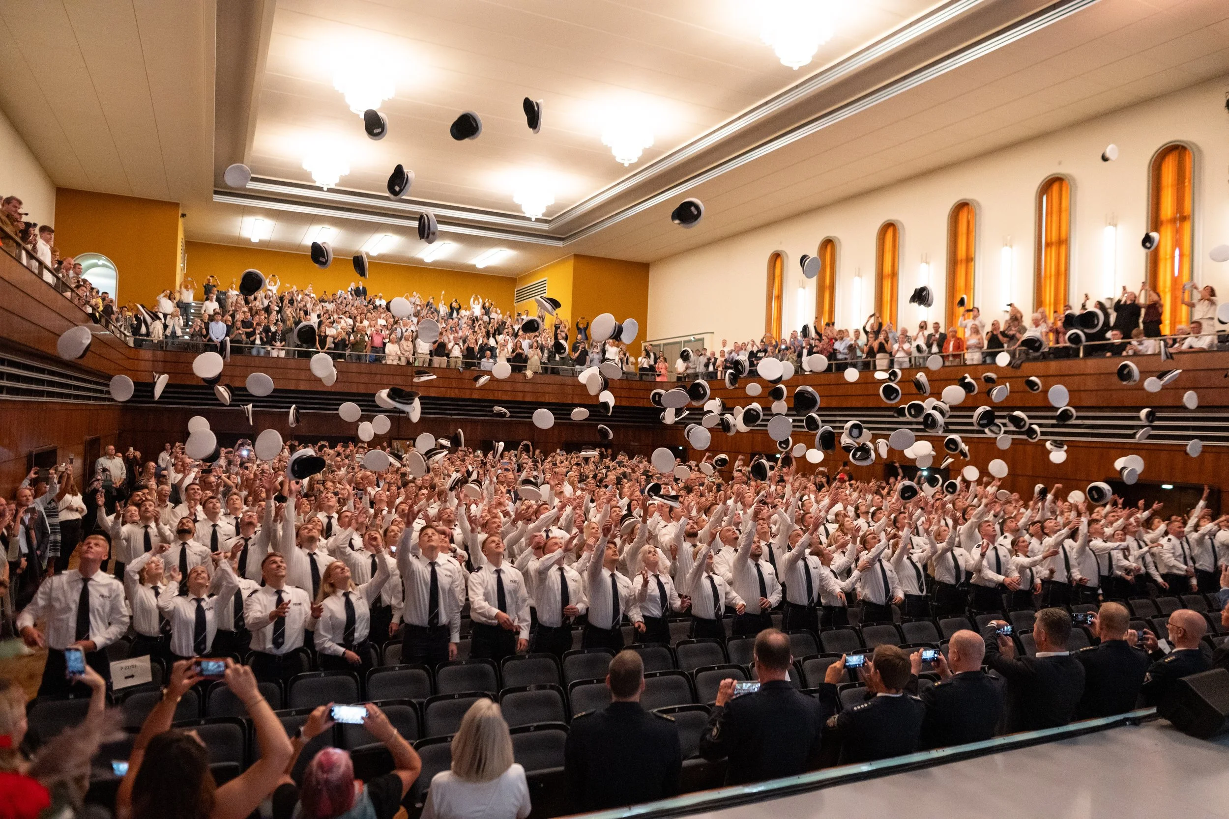 Es war sehr schön, die Graduierenden bei ihrem Abschluss zu beobachten. Vor allem der Schulterklappen-Wechsel und das Hütewerfen war für uns ein Highlight.